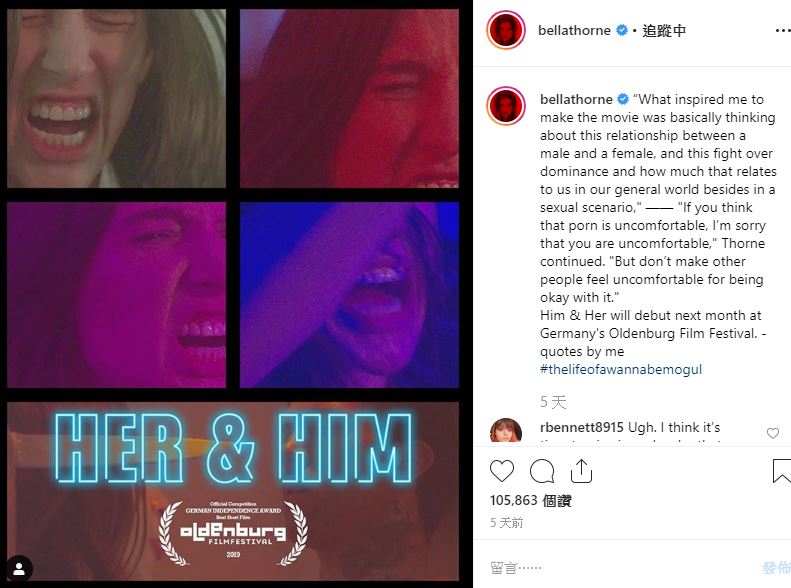 現年僅21歲的美國童星貝拉索恩(Bella Thorne),2010年就憑著迪士尼影集《Shake It Up 舞動青春》走紅,不過近年她則以大膽作風引起外界關注包括公開大尺度照片,或是才剛宣布要執導首部成人片。19日,貝拉索恩在個人IG連續公開多張上空照,內文引用個人作品《The Life Of A Wannabe Mogul》內容,疑似在回應外界的負面聲浪。