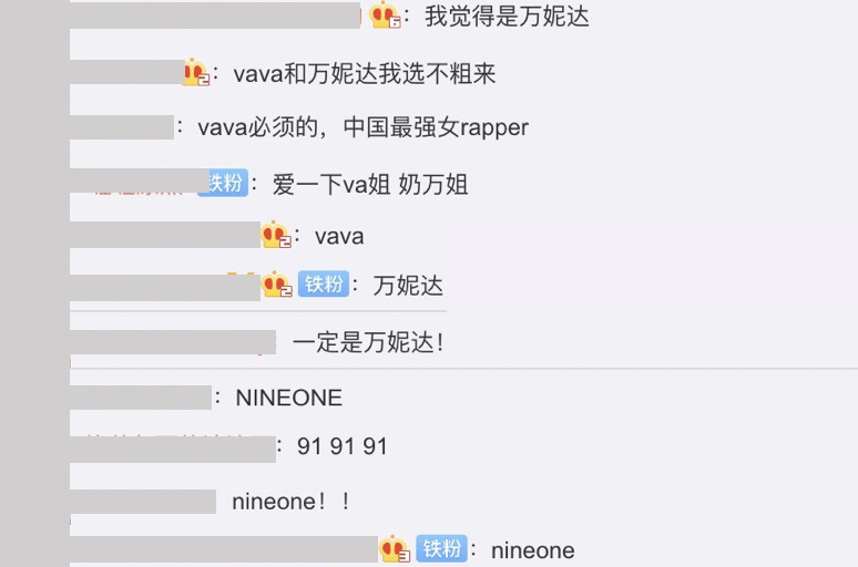 該位嘻哈博主在文章中提及了:呆寶靜、VAVA、劉柏辛、萬妮達、懟甜、NINEONE、FreeC等11位女選手,而在留言區中許多網友也紛紛選出自己支持的選手,呼聲最高的前三名分別為:VAVA、萬妮達以及NINEONE。NINEONE來自西安和Capper同一廠牌,過去她以一首《PUMA》瞬間爆紅,她在本季海選時從吳亦凡手中獲得了通關金項鍊,當時吳亦凡也對她寄託厚望,說道:「我希望妳是女生裡面的潛力股,希望我沒有給錯」,但在第四期時對上Orenda僅獲得一票而被淘汰,而她的作品也除了Rap非常厲害之外,她的副歌也非常抓耳,獲得許多網友支持與好評。