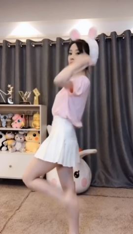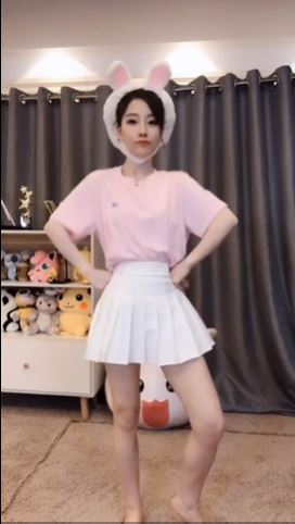 近日非常火紅的舞蹈非「VogueMe酷枇杷舞」莫屬,由藝人羅志祥作為發起人,許多藝人接受挑戰,跳出具有自己獨特風格的酷枇杷舞。馮提莫身穿粉色上衣搭配白色短裙,頭上戴著兔子頭套,渾身充滿青春氣息,跳起酷枇杷舞,舞步輕盈活潑,看起來格外可愛,馮提莫也調侃自己說道,「我這個小短腿兔子版本也算是炒雞簡化了」。