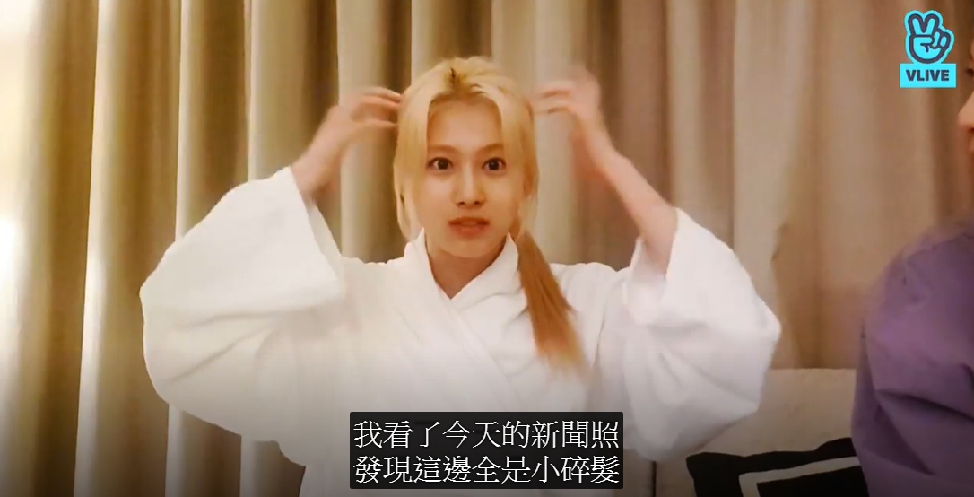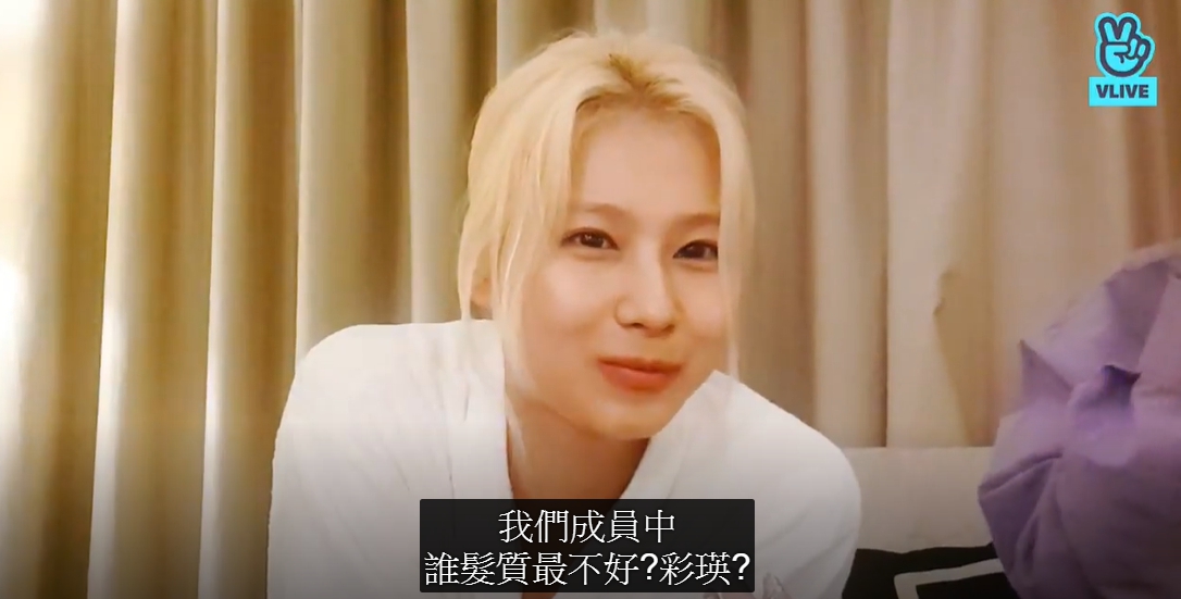 而成員也在直播中討論隊內誰的髮質最不好,她們票選出來是SANA跟彩瑛,娜璉更表示用摸的話SANA的髮質更不好,而彩瑛的頭髮是很容易斷,因為她們都各自染了很淺的顏色,雖說好看但卻很傷髮質,因此娜璉說「金髮受罪」,染黑髮的話髮質會看起來比較好,讓網友看了也很替SANA擔心她的髮質,希望公司不要再讓她過度染髮了。
