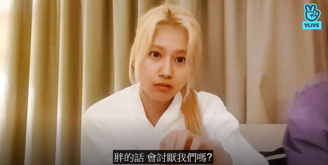 日前,TWICE成員娜璉、SANA以及定延以素顏亮相,在V LIVE官方平台開啟了直播,直播中的她們先是聊起了成員中誰的髮質最差,搭配上薯條、漢堡、科學麵等一系列的油炸食物,討論的正起勁的時候,成員娜璉看到了一則粉絲的留言,這位粉絲應是出於好意,但卻留下了「姐姐,會胖的」這樣的留言,娜璉先是念了出來,坐在鏡頭正前方的SANA一聽到留言,機靈的反問「胖的話,會討厭我們嗎?」語氣不但沒有生氣,反而跟粉絲聊了起來,相當的親民。