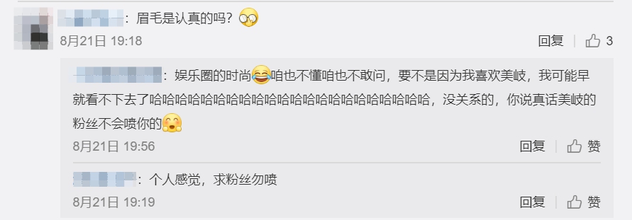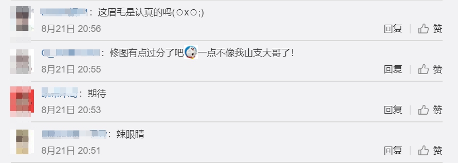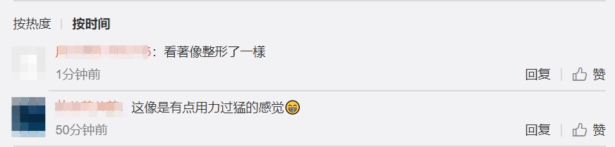 這組照片一出馬上引來不少網友吐槽,表示「眉毛粗得像蠟筆小新」,讓網友翻出她之前的照片,附和「不只蠟筆小新,還有櫻桃小丸子」,還有網友表示疑惑「化妝師、後期的創作初衷難道是泰國風?」、「這是得罪造型師了嗎?」、「眉毛真的是認真的嗎?」、「這2張照片真的不是黑她嗎?」更有網友直批「要是有化妝師敢這樣給我化妝,我得把最貴的眼影盤全糊在她臉上」、「看著像整形了一樣」。