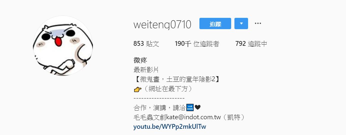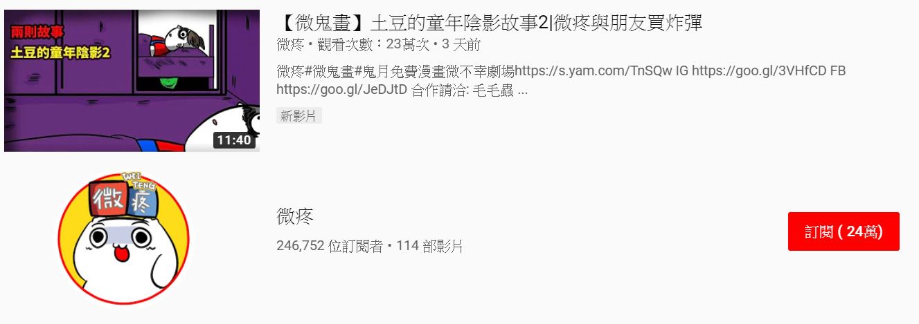 插畫家微疼因為幽默的故事和可愛的畫風而走紅,他平時也在webtoon分享《微不幸劇場》、《不要笑當兵的人》、《微疼姑姑的鬼故事》等等漫畫,在FB有超過91萬人次追蹤,IG上有19萬的粉絲,他經營的Youtube頻道「微疼」也有24萬人次訂閱。