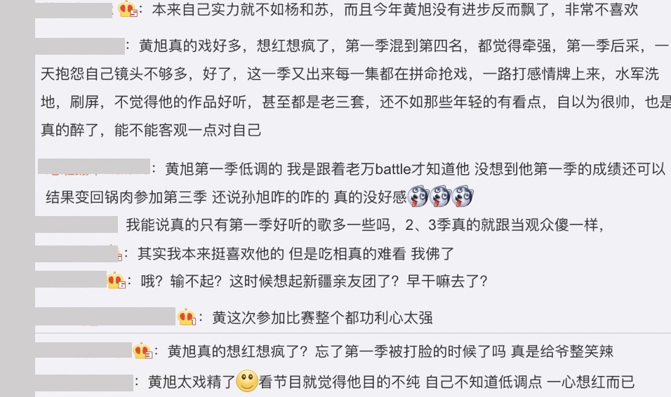 網友看見黃旭發文之後,也紛紛回應:「其實我本來挺喜歡他的 但是吃相真的難看」、「黃旭真的戲好多,想紅想瘋了」、「黃這次參加比賽整個都功利心太強」、「哦?輸不起?這時候想起新疆親友團了?早幹嘛去了?」、「黃旭真的想紅想瘋了?忘了第一季被打臉的時候了嗎」,對黃旭這一季的行為感到不滿。