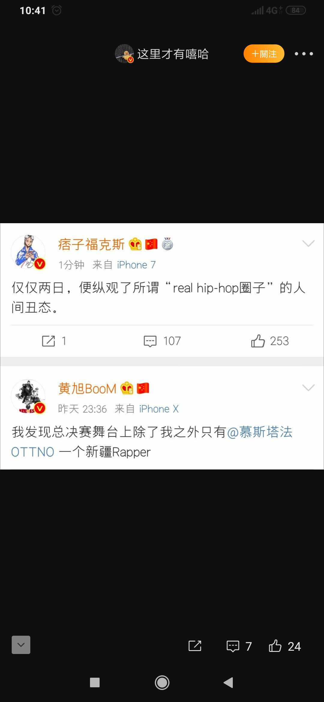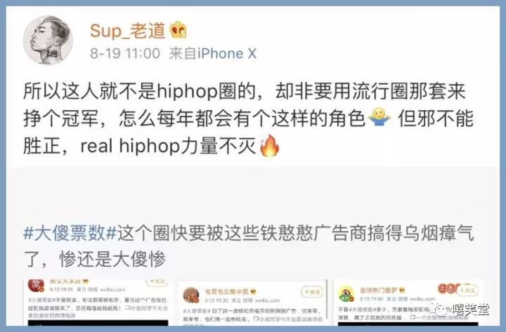 黃旭在23號晚間時於微博上發文寫下:「我發現總決賽舞台上除了之外我只有 @慕斯塔法OTTNO 一個新疆rapper」,但是發出貼文後沒多久文章就已經刪除,根據許多現場參加錄製的網友敘述,最後一環節是許多Rapper上台進行2選1的投票,在場的新疆rapper包含福克斯、劉炫廷、多雷等人,黃旭發這篇貼文也是為了怨懟這些新疆Rapper沒有挺他,對此福克斯也發文:「僅僅兩日,便縱觀了所謂『real hiphop的圈子』的人間醜態」,疑似是回應了黃旭的不滿。