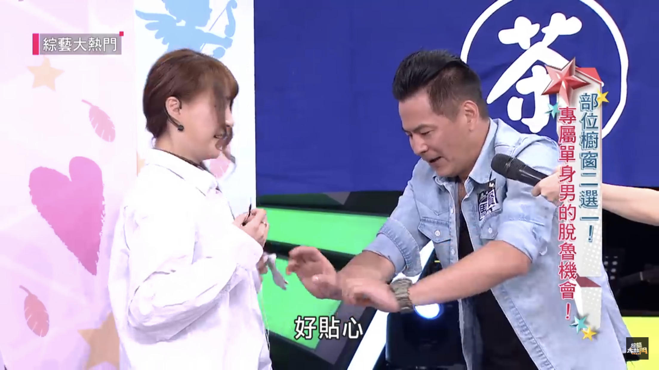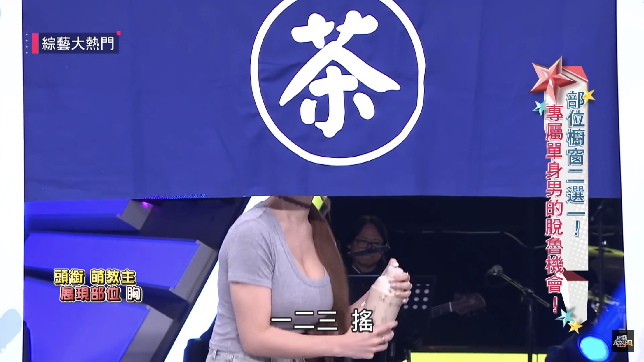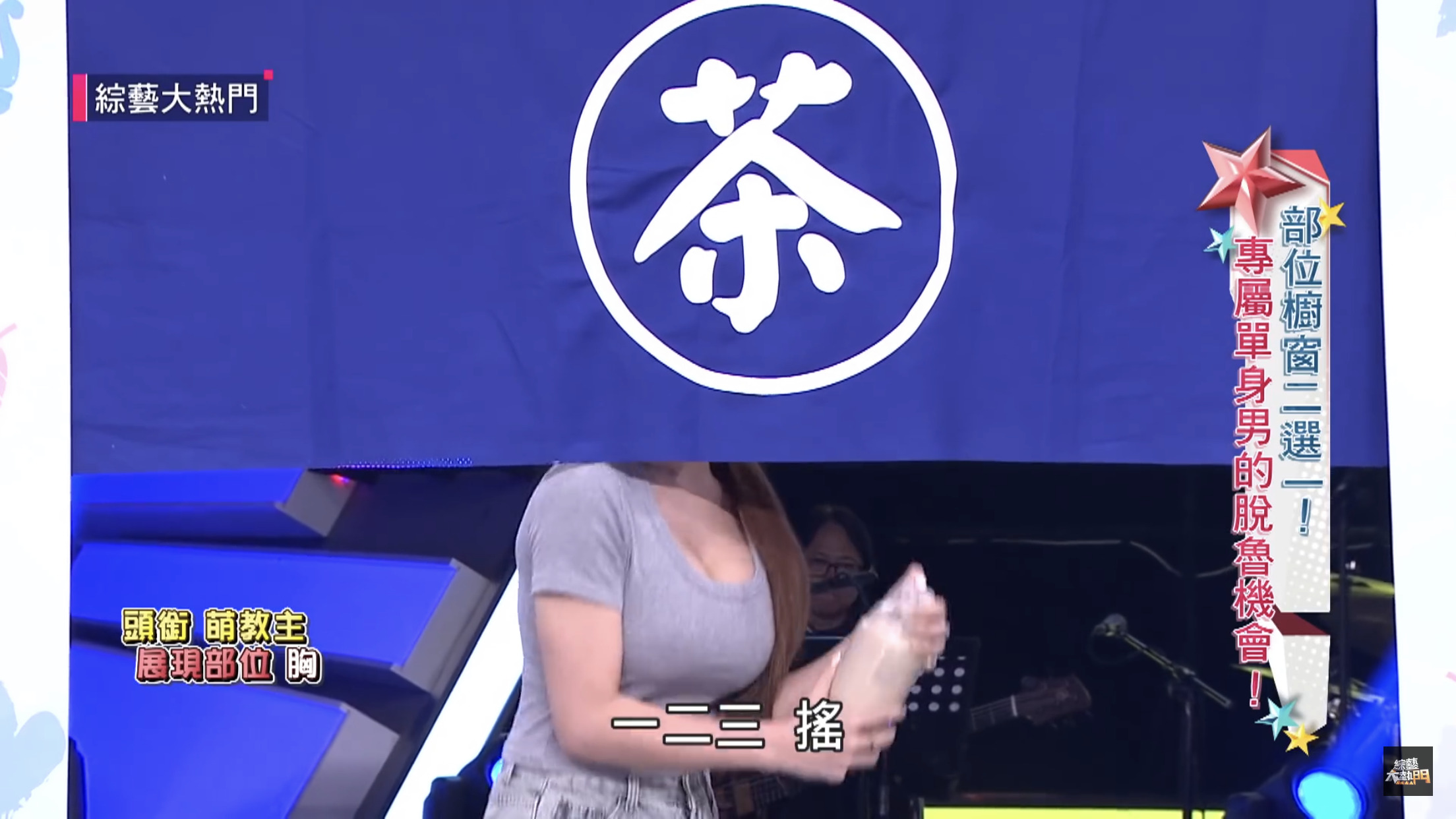 每個人在挑選伴侶時第一眼在意的地方不盡相同,這集《綜藝大熱門》主題為「不露臉聯誼大賽」,男來賓紛紛說出自己第一眼會看女生哪個部位,接著便進行「部位櫥窗二選一」。在馬國賢選擇時,櫥窗裡有2位女生,分別是E奶俏寶貝和E奶萌教主,並用搖珍奶的方式來展現自己的傲人上圍,E奶萌教主便是元元,身穿灰色貼身深U領上衣,賣力搖著珍奶時,胸前一對豪乳也跟著上下狂晃,讓來賓們大飽眼福!