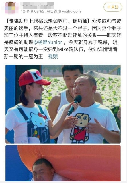 在節目中,鍾楚曦團內的一名素人團友楊璐在閒聊時,透露自己初入社會的時候,曾經當過某女星的助理,當時他曾因為幫其他藝人拿東西,而被該女星破口大罵「我花錢請你來,是讓你當全劇組的助理嗎?」除此之外,對方還曾經用他的臉來練習化妝、把他丟包在高速高路上等等,而且因為該女星怕黑又怕吵,所以還曾經要求他睡在浴缸、飯店走廊等地方,再拍下照片,分享到私人的社交軟體上嘲笑。