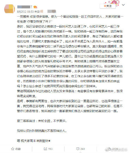 節目播出後,有網友循著線索懷疑楊璐爆料的「該女星」就是孫驍驍,但是遭到孫驍驍否認,她的前助理也發長文回應,表示孫驍驍不是那樣的人,一起工作四年,她很貼心,不吝幫助身邊人,從不會把工作人員當外人,但仍有大批網友不領情,表示「難不成還說:沒錯是我,就是我」、「難不成還能直接承認啊」、「10年的時候喜歡她的,現在看她的種種行為,只能說當時是真的眼瞎」並吐槽「這不是相當於問水果攤老闆你這瓜甜嗎?」