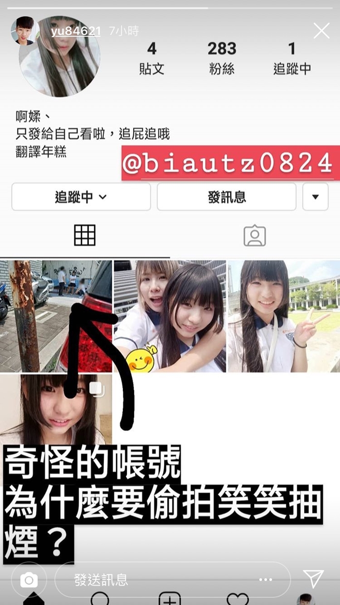 自八月中旬起,這一連串的「套路」便悄悄地開始進行著,先是「小玉」在自己的限時動態上舉發一名奇怪的女學生,直稱「奇怪的帳號,為甚麼要偷拍笑笑抽菸?」,引發許多網友湧入這個名為「啊媃」的女學生帳號中,大家紛紛痛批著她的怪異行為,直嗆「幹嘛偷拍,想紅就說嘛!」。