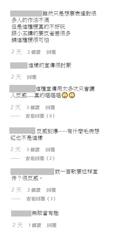 儘管事情演變至此,網友們已紛紛理解到這一切都是為了「新作品」所做的鋪陳,但仍有許多人認為這樣的「套路」安排不是很妥當,甚至直言「雖然只是想要表達對很多人的作法不滿,但是這種梗真的不好玩」「這種宣傳用太多次只會讓人反感…」「就一首歌要這樣宣傳?很反感。」,似乎因著這樣極端的操作方式而造成了反效果。