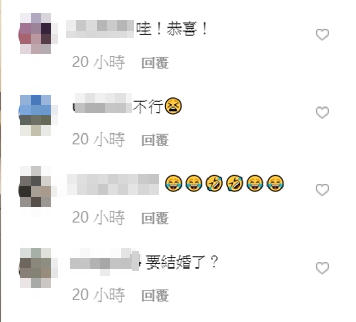 Lucy的貼文一出後,黑男也在下方回應了三個愛心,不承認也不否認求婚事實,讓男粉不敢相信崩潰大喊,「不行嫁!」。震驚之餘,也有眼尖網友分析,「黑男好像拿的是手機」、「是在看手機吧!」、「我覺得很多人被騙,明明就是黑男被Lucy罵」、「這只是在喬黑男拍照角度吧?」。