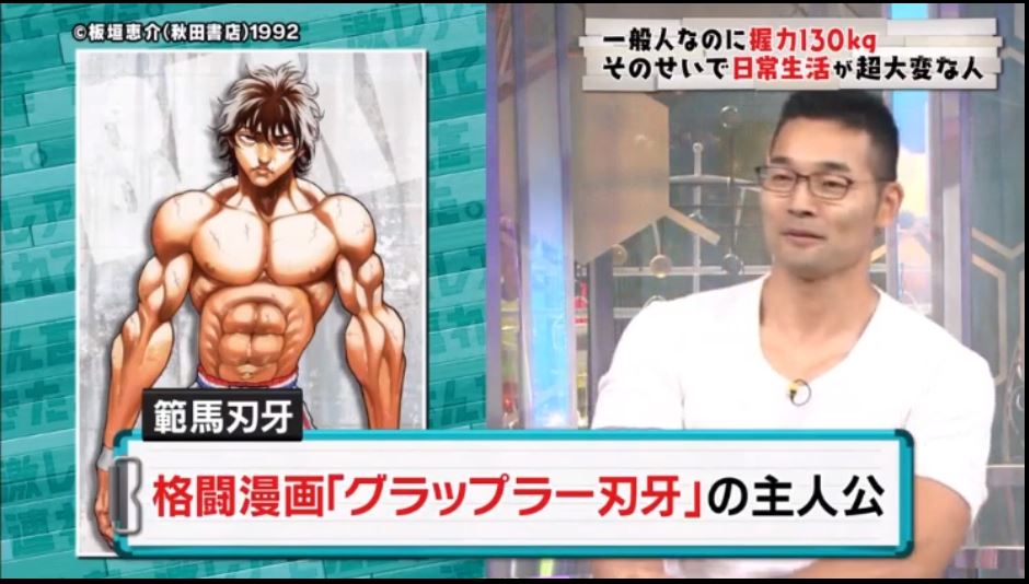 日本節目喜愛挖掘各種奇人異事,近日又發現有個深藏不漏的電腦工程師新沼大樹,今年49歲,他的單手握力超過130公斤,以一般男子握力是46公斤來說,新沼大樹整整高於平均3倍之多,因而被封為「握力王」,雖然因為握力讓他聞名健身界,但也帶來許多困擾,甚至無法與妻子同睡,引起網友一片譁然。
