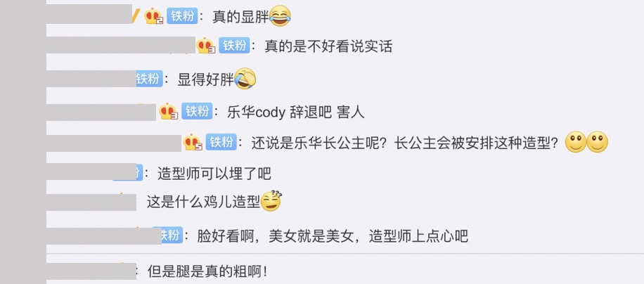 昨日(27)程瀟出席節目發布會時上半身穿了一件排扣的白色外套,而下擺呈現傘狀的造型,下半身則是搭配了一件淺色的直筒牛仔褲,配上白色高跟的靴子,而在網友曝光的現場照中,程瀟的腿部因為淺色牛仔褲的關係,和過去的照片相比有明顯的差異,看起來較為顯胖且腿短,整體造型也不斷被網友吐槽:「顯得好胖」、「樂華cody 辭退吧害人」、「還說是樂華長公主呢?長公主會被安排這種造型?」、「造型師可以埋了吧」、「真的是不好看說實話」,造型師慘被砲轟。