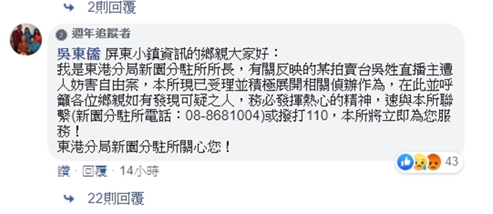 由於吳小哲突然消失,許多人察覺不對勁,立刻將失蹤訊息轉發至各臉書社團詢問情況,東港分局新園分駐所所長也在粉專「屏東小鎮資訊」出面表示,「有關反映的某拍賣台吳姓直播主遭人妨害自由案,本所現已受理並積極展開相關偵辦作為」。