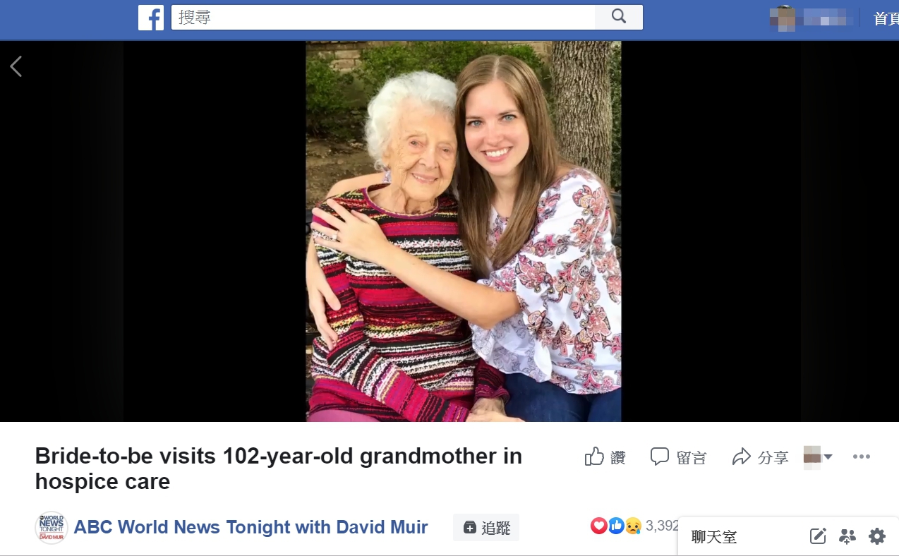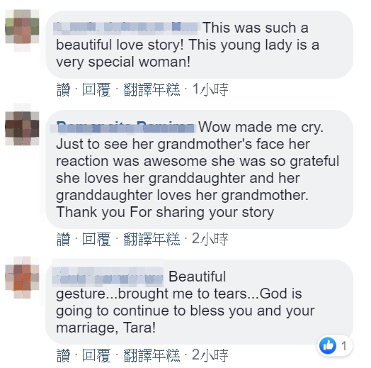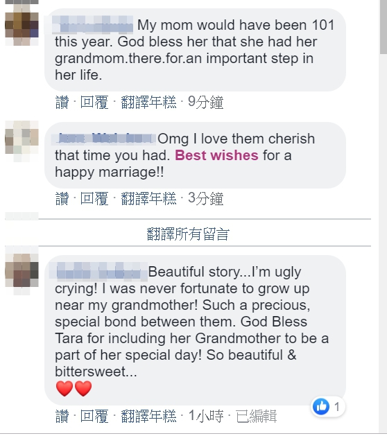 後來《ABC World News Tonight 》報導此事,讓許多網友也紛紛感同身受,表示「好美的故事,我忍不住跟著一起哭了」、「我好喜歡你們那段珍惜彼此在一起的時光」、「你讓我不小心大哭了,對你只是為了見奶奶一面,覺得很感動」,並對泰拉的婚禮表示祝福。
