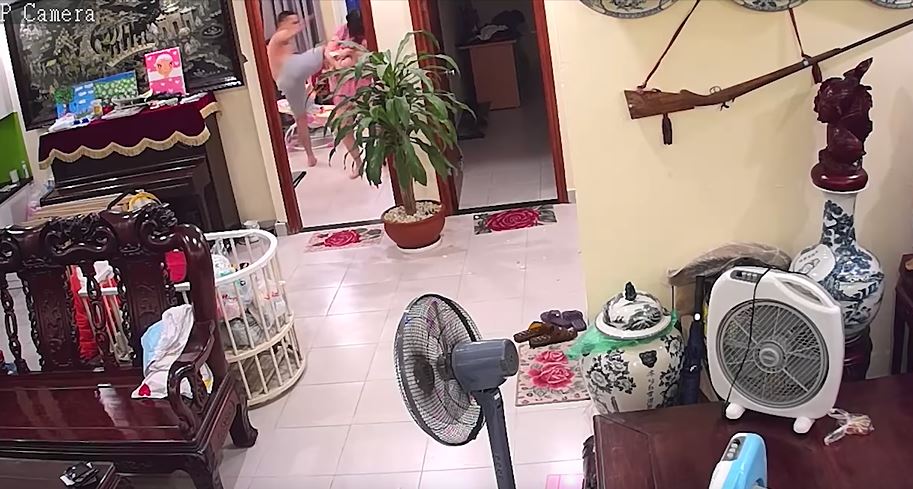 影/只是移個電視!越南知名DJ遭「武術老公迴旋踢頭」 手抱2月大嬰兒哭著逃!