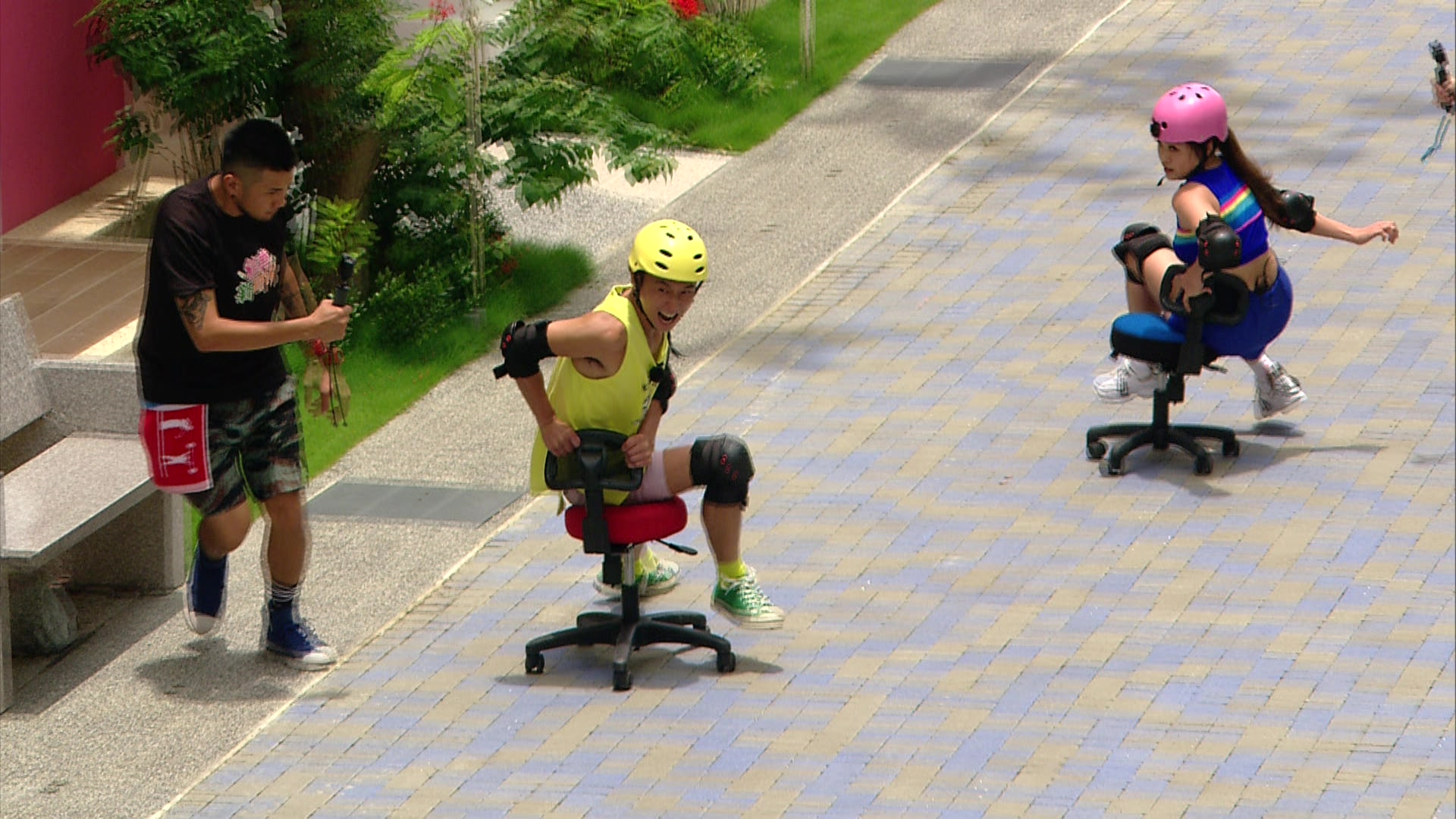 接著第二關卡「頭文字椅」,辦公椅的賽車比賽,浩子到目前為止可是稱霸第一,沒輸過的浩子,更激起小嫻想贏的衝力,小嫻更誇下海口說:「今年目標就是要超越浩子!」兩隊更是卯足全力衝刺,而為了贏得較多的骰子,浩子還大方讓小嫻隊先出發,在最後浩子跟小嫻的比拚,浩子與小嫻卯足全力,兩人的速度與距離更是不相上下,刺激萬分。