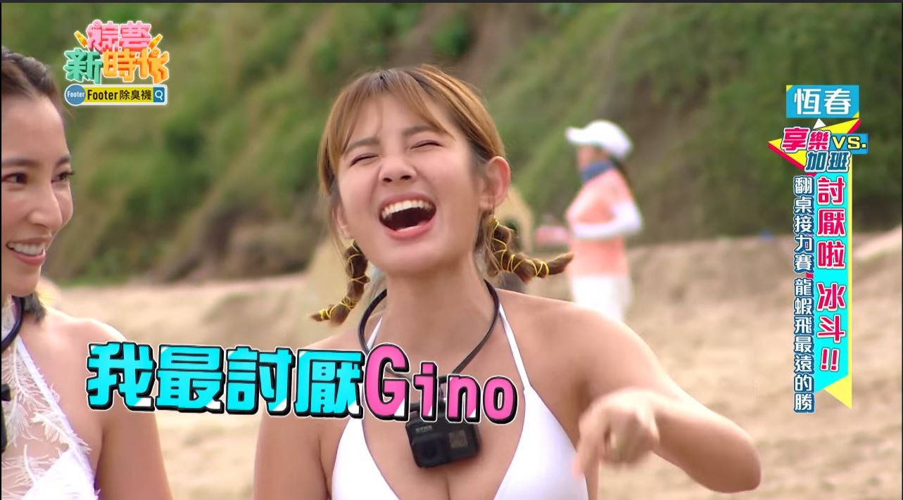 《綜藝新時代》23日播出的節目中,在最後一個環節「討厭啦冰斗」,會讓藝人喊出心中不滿後,用力翻桌,並測量桌子上的龍蝦玩偶掉下來之後滾動的距離競賽,輪到鮪魚時,她爆料Gino都會一直拍女藝人穿泳裝的樣子,表示自己最討厭Gino,「因為每一次我們穿泳裝,他除了看之外還會拿手機瘋狂拍照,他的手機裡面有很多女藝人、女明星的性感照片」甚至還大喊:「他這個大色狼!」。