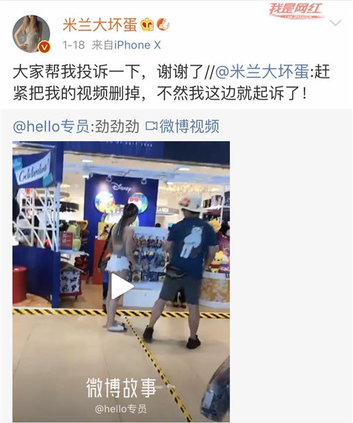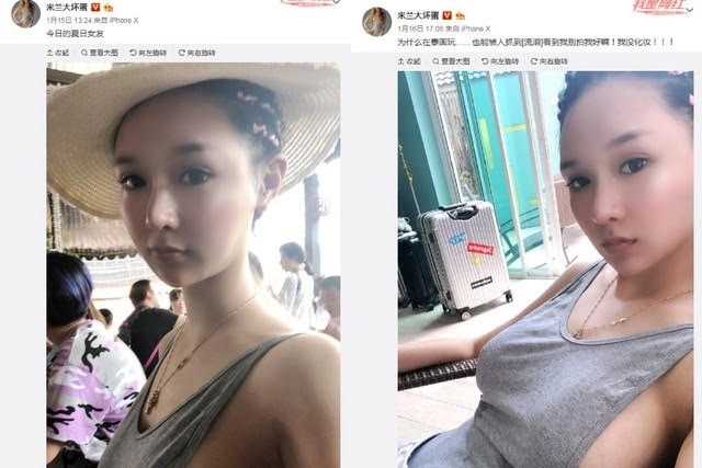 米蘭本人也於微博發文,「為什麼在泰國玩…也能被人抓到。看到我別拍我好嘛!我沒化妝!!!」,證實影片中辣妹身分。原來米蘭當時到泰國玩,還特別穿上被拍到的服裝自拍,表示這是「夏日女友風」。對於自己被偷拍影片在網上流傳,米蘭似乎不是很開心,要求將視頻刪除,否則將會起訴。