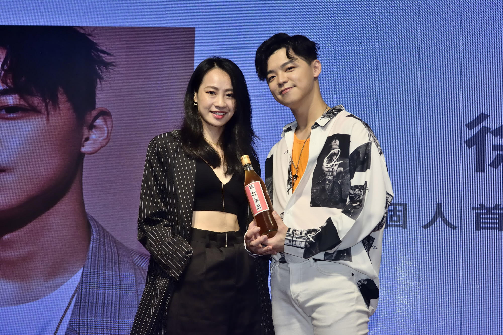 近期發行個人首張EP「信 自己」有「小羅志祥」之稱的樂壇新人徐少麟,今日(8/29)舉辦媒體見面會,MV女主角同時也是唱跳組合DS的dindin也到場送上鐵打藥酒給因為苦練舞蹈滿身是傷的他。