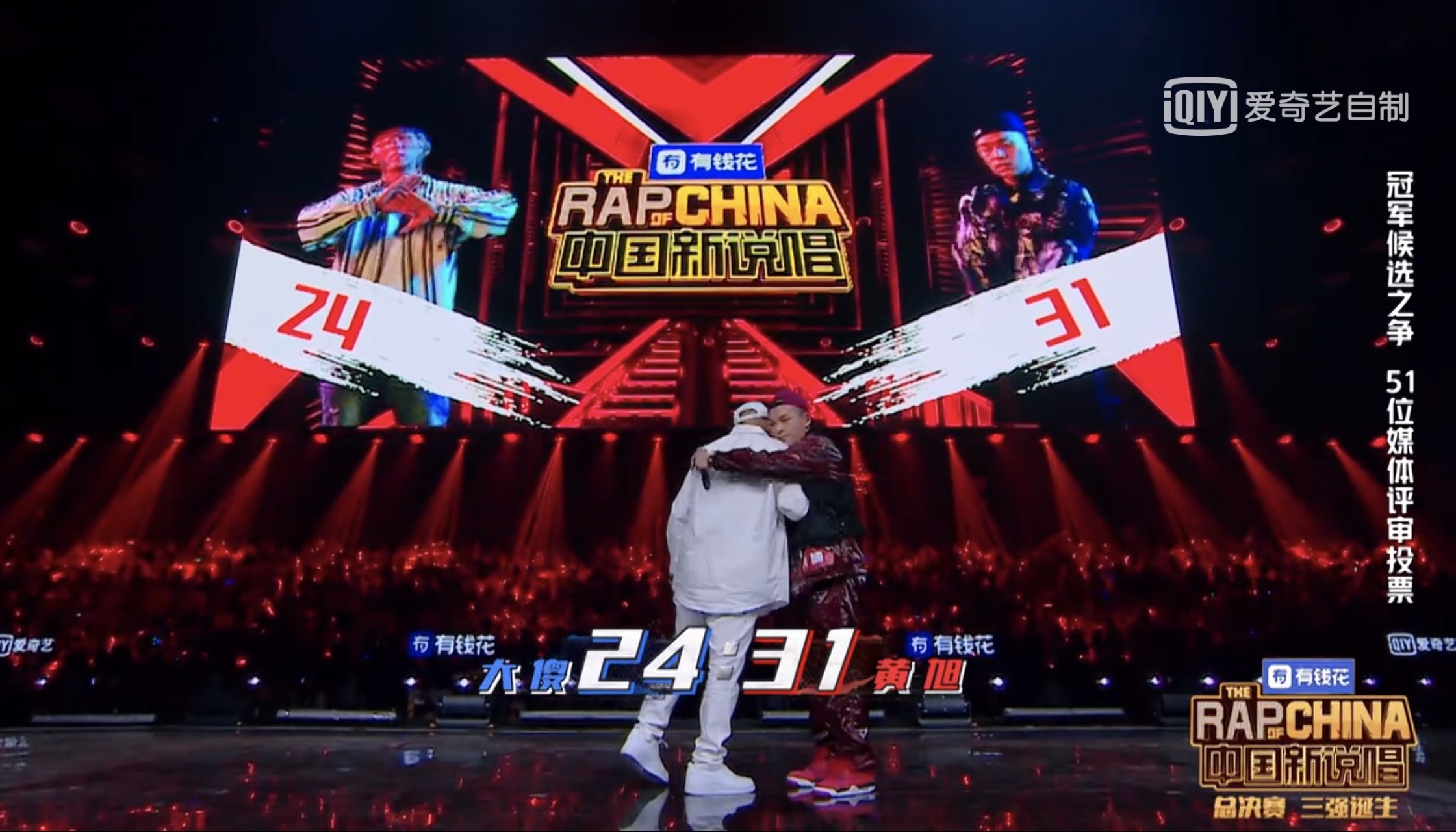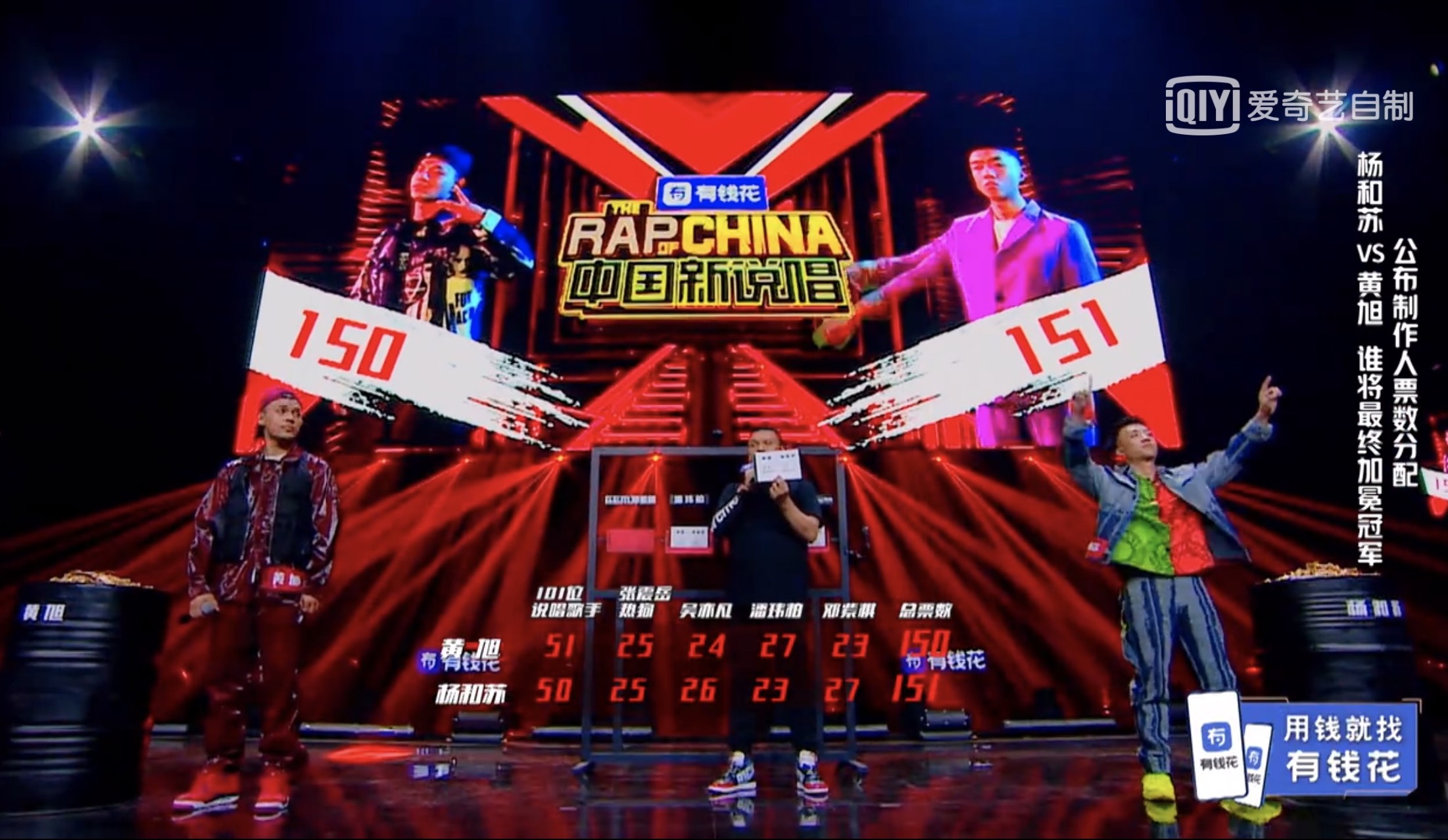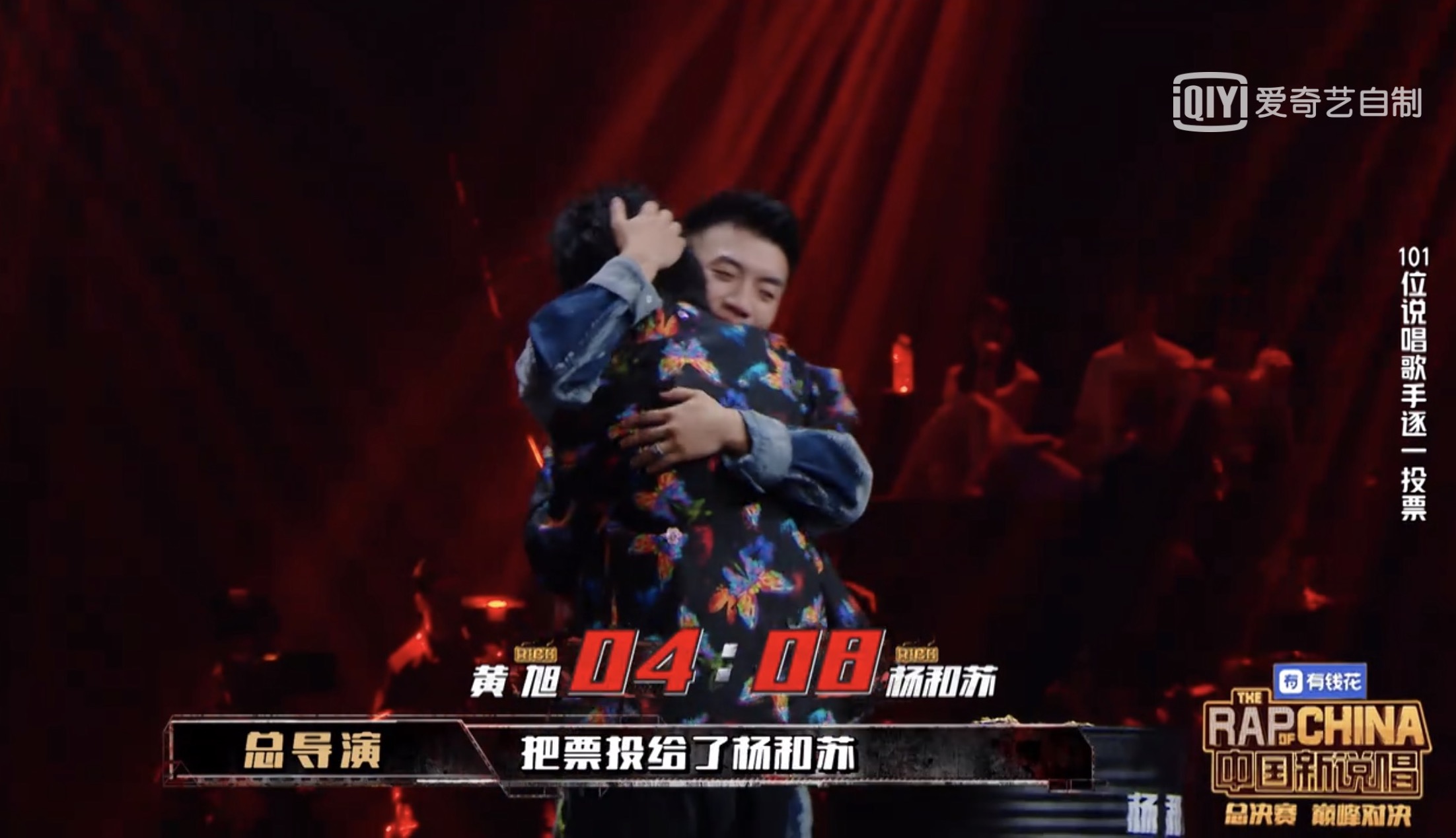 而在製作人投票之前,兩人僅1票之差由黃旭領先,最終加上導師們的票數後由楊和蘇反超1票,最終榮獲總冠軍。然而黃旭在23號晚間時於微博上發文寫下:「我發現總決賽舞台上除了之外我只有 @慕斯塔法OTTNO 一個新疆rapper」,在場的新疆rapper包含福克斯、劉炫廷、多雷等人都跑票投給楊和蘇,黃旭發這篇貼文疑似也是怨懟這些新疆Rapper沒有挺他,引起一陣軒然大波。