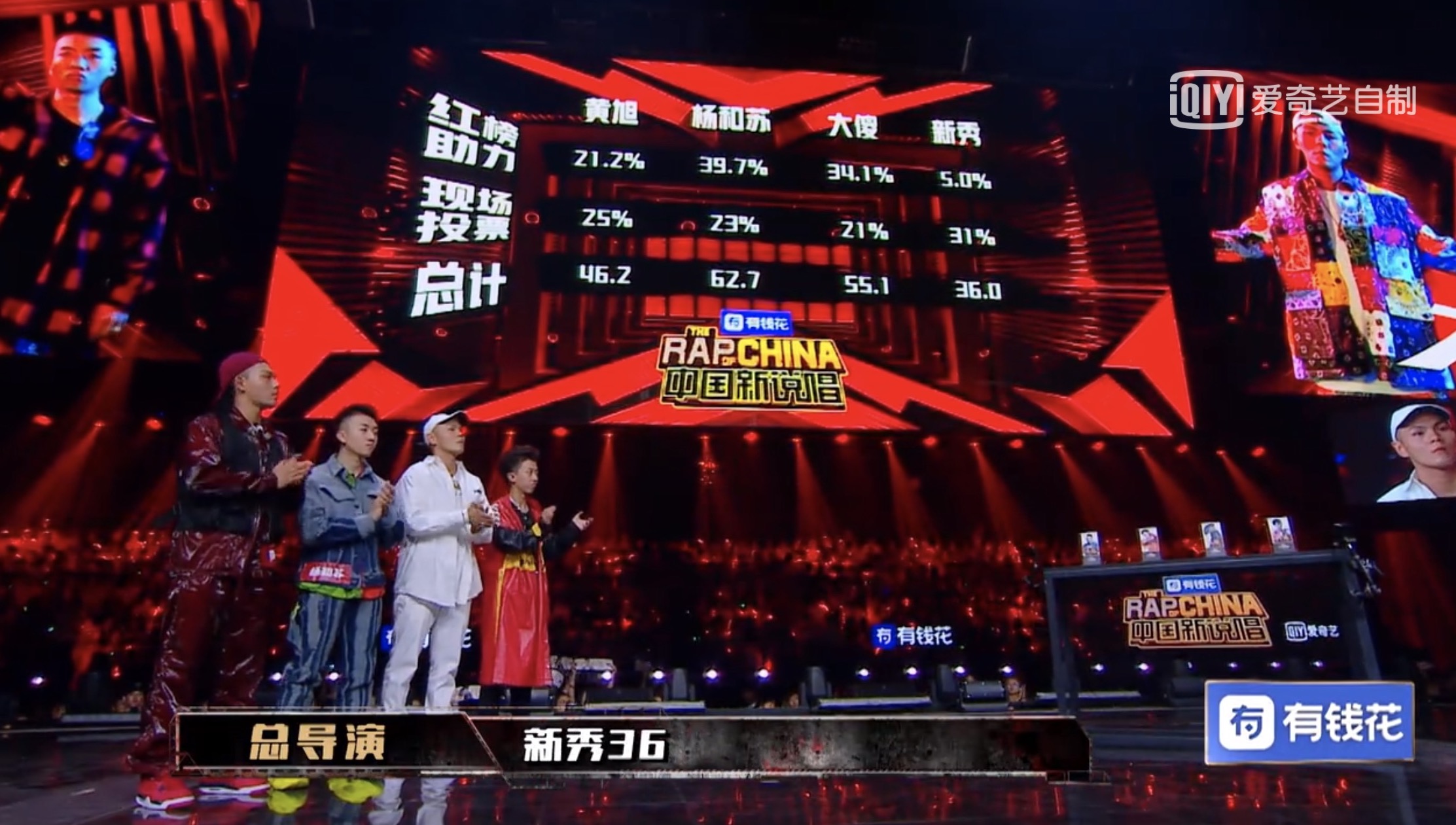 而在最後一輪兩位冠軍候選人黃旭與楊和蘇各別演出完畢後交由現場101位Rpaaer上台投票,當時黃旭以1分之差領先,但接著加上導師們的票數後,楊和蘇反超1票,逆轉成為本屆新說唱總冠軍。