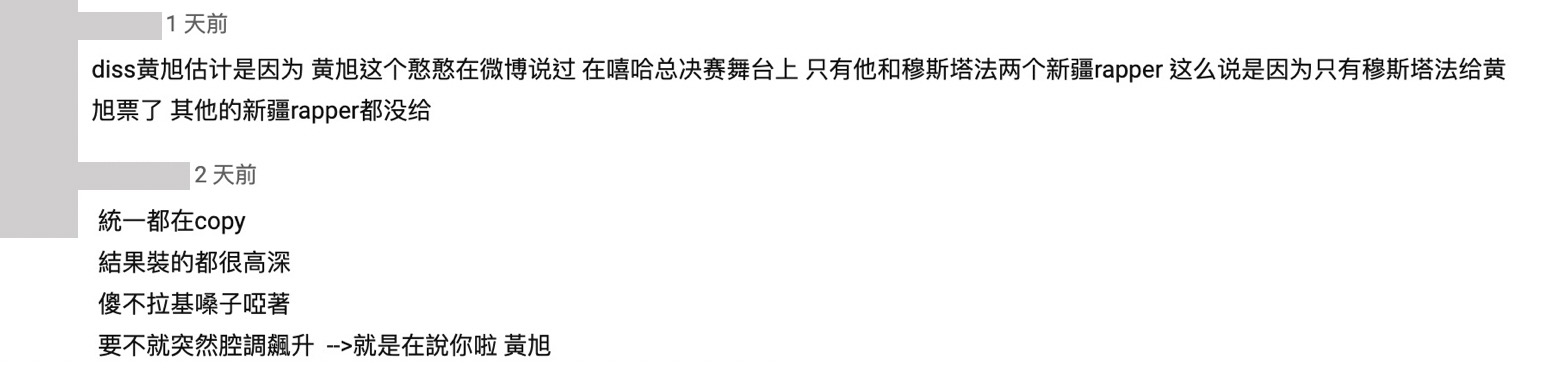 而艾熱這段歌詞也引起網友們討論,就有網友分析出艾熱這段疑似是在diss同樣來自新疆的「黃旭」,並說道原因是因為黃旭在《新說唱2》總決賽錄製完畢後曾發文寫下:「我發現總決賽舞台上除了之外我只有 @慕斯塔法OTTNO 一個新疆rapper」,但在場其實還有多位來自新疆的Rapper,只是沒有把票投給黃旭就被怨懟,因此有網友猜測艾熱是在diss黃旭,但在微博上也有網友分析後認為這段歌詞是在嗆PGONE、那吾克熱。