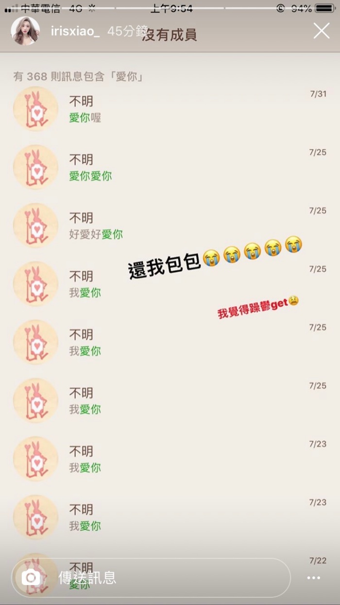 沒辦法聯繫黃包包!「閃亮亮」憂鬱爆發曬「恩愛訊息」哭喊:還我包包