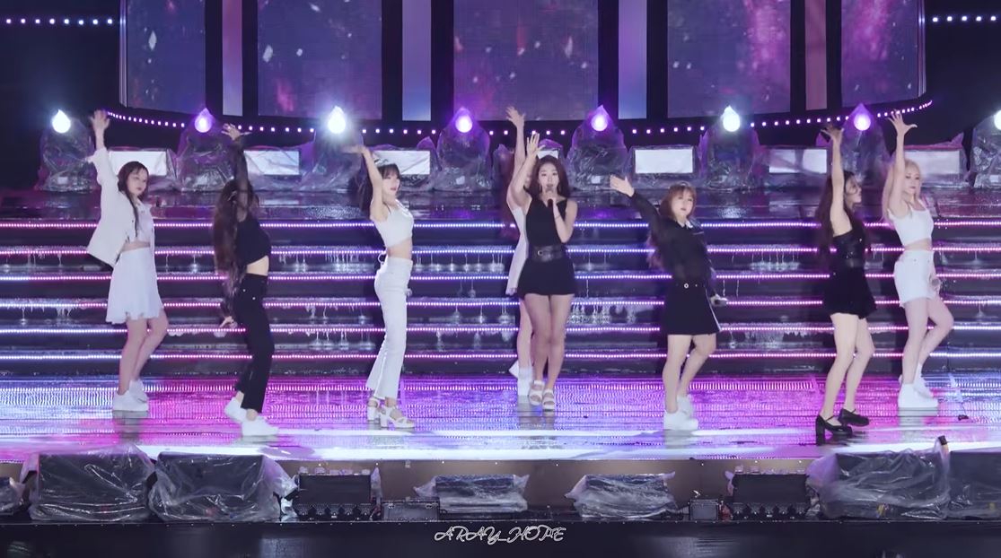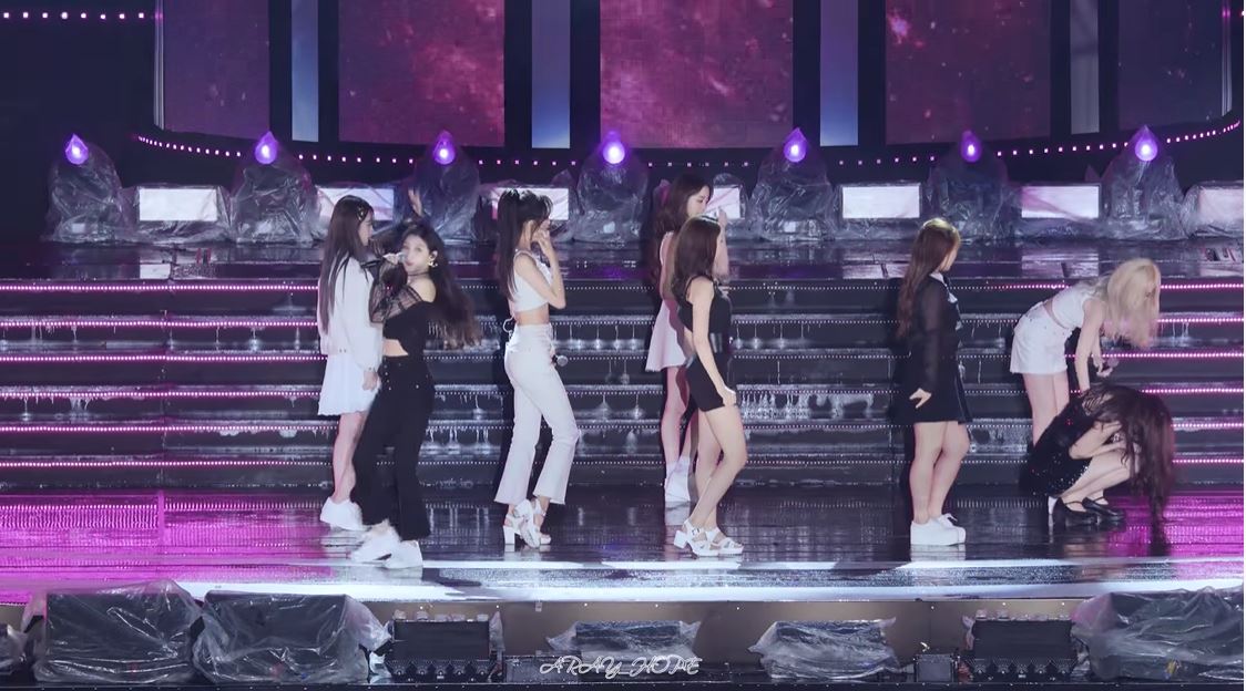 Lovelyz雨天舞台踩跟鞋搏命演出!「美珠」腳滑重摔「屁股直落下」忍痛跳完...