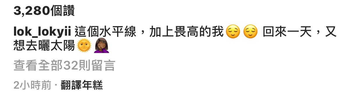 洛兒日前(8/30)在泰國似乎沒有享受到太陽的陽光,讓她在今日貼出一張向著陽光的泳裝照,照片中,可以看見陽光的餘暉,灑落在她的臉龐,與前一組泳裝照多了一份溫暖,測半邊可以清楚看見,身形的線條,身材十分姣好,散落的頭髮,閉上眼睛,似乎享受著陽光在身上的感受。讓洛兒也忍不住說:「這個水平線,加上畏高的我,回來一天,又想去曬太陽。」不同於其他模特兒,總是害怕曬黑,洛兒卻是享受著陽光的溫暖。
