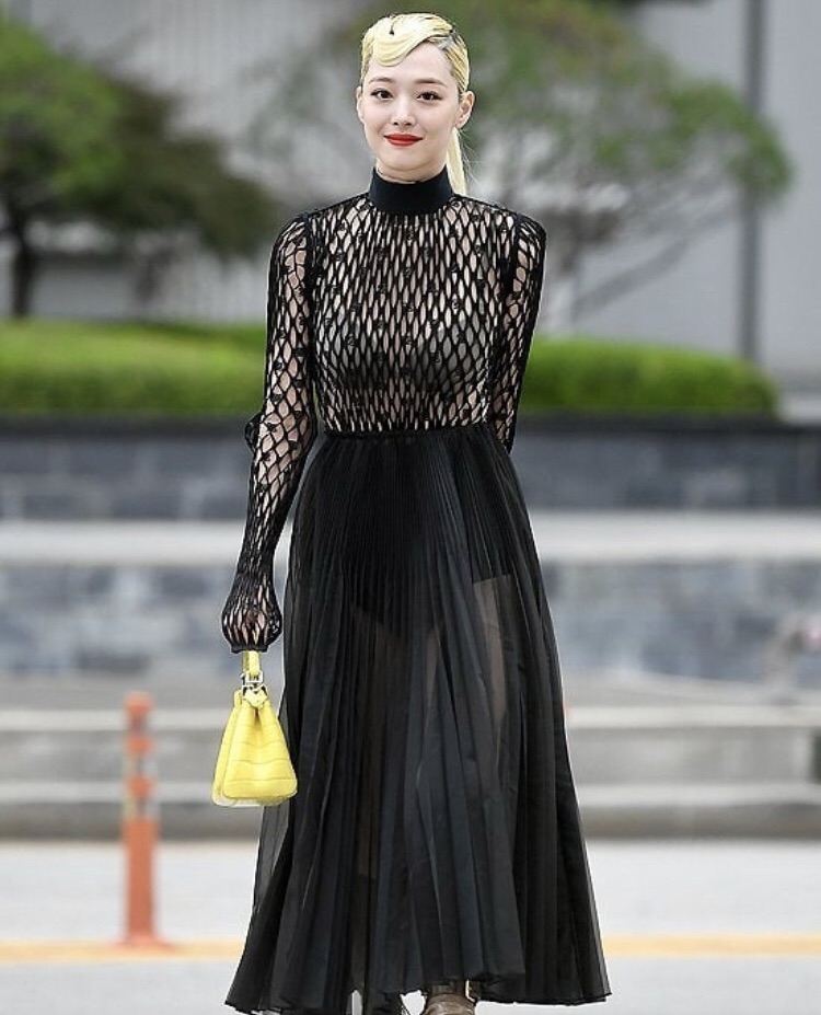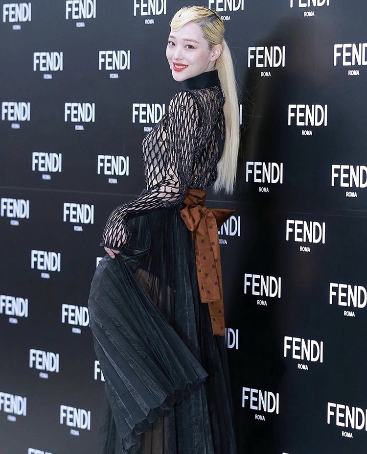 而雪莉於3日時受邀出席品牌Fendi的活動,穿搭又是引起粉絲們的討論,原因是她穿了一件漁網簍空洋裝,內搭一件肉胎色襯衣加一件黑色內衣,更梳起了一頭復古的髮型,讓許多粉絲看到照片後全驚呆,紛紛表示:「我覺得不行」、「對不起,還是get不到」、「重新換個髮色好嗎」?完全不能認同她的造型。