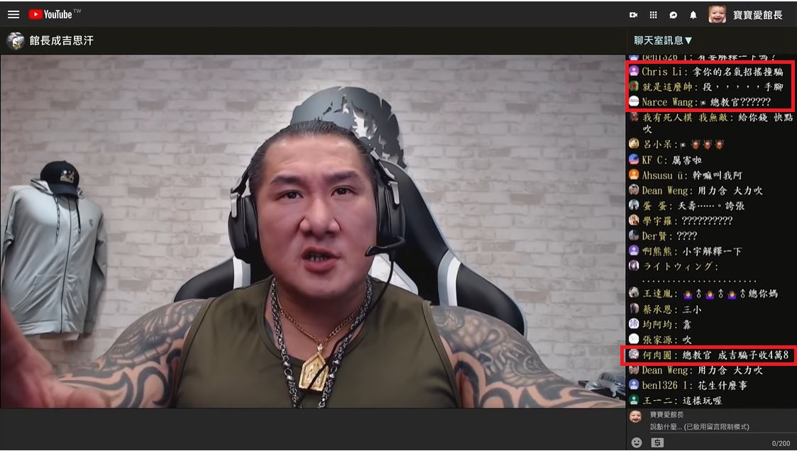 「館長」陳之漢現任「成吉思汗健身俱樂部」的執行長,同時也是台灣知名的直播主,常在網路上發表自身對於台灣社會議題的看法,而且一向直嗆敢言的他,更曾與立委黃國昌舉辦「反紅媒」遊行,是許多年輕人的意見領袖。而近日他卻衰事纏身,不僅遭盜用「成吉思汗」的公司名號,更和「詐欺犯」扯上關係,頻遭記者詢問,令他不勝其擾終於出面在直播中回應。