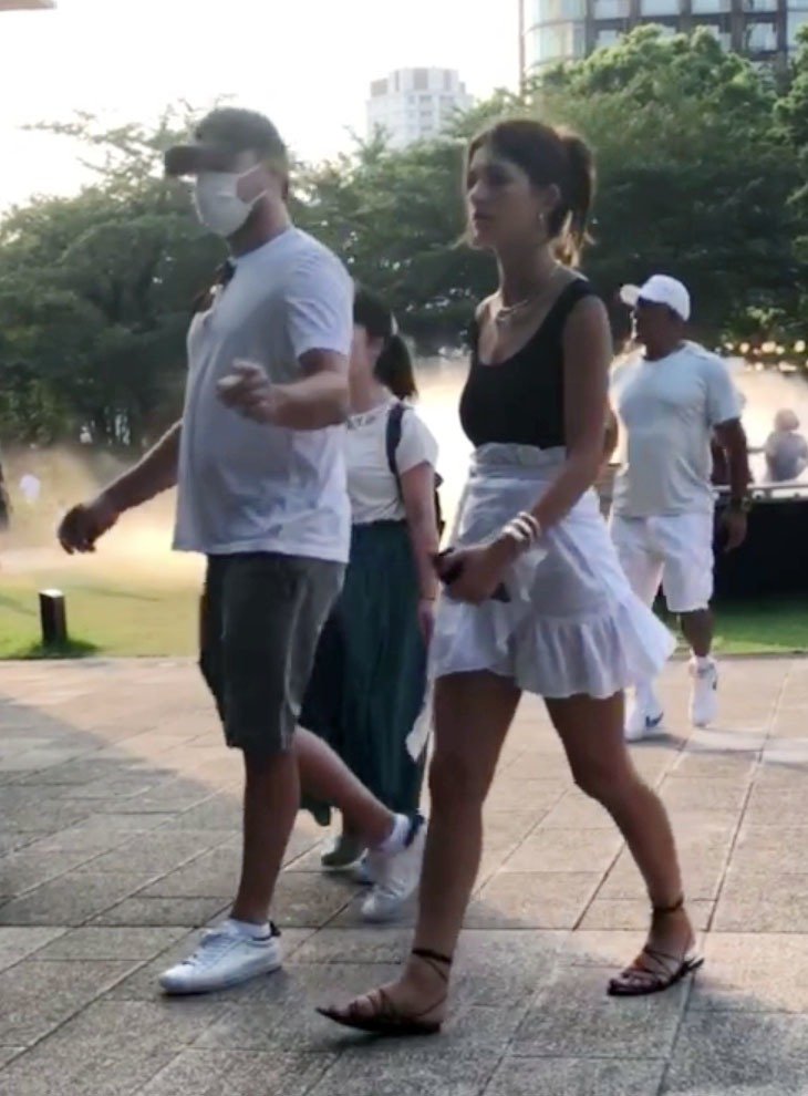 有媒體拍到李奧納多趁空閒的時候和卡蜜拉莫羅妮在六本木附近的公園牽手散步,當時女友卡蜜拉莫羅妮穿著黑色低胸背心搭上一件白色短裙,頭髮隨意紮起,簡單又俏皮,而李奧納多頭戴黑色鴨舌帽以及白色口罩,穿著簡單的白色T恤與短褲,腳踩一雙白鞋,相當輕便低調,雖然四肢精瘦,但是下腹卻明顯凸起,看得出肚子明顯大了一圈,不知道是否為中年男性會面臨的啤酒肚問題。