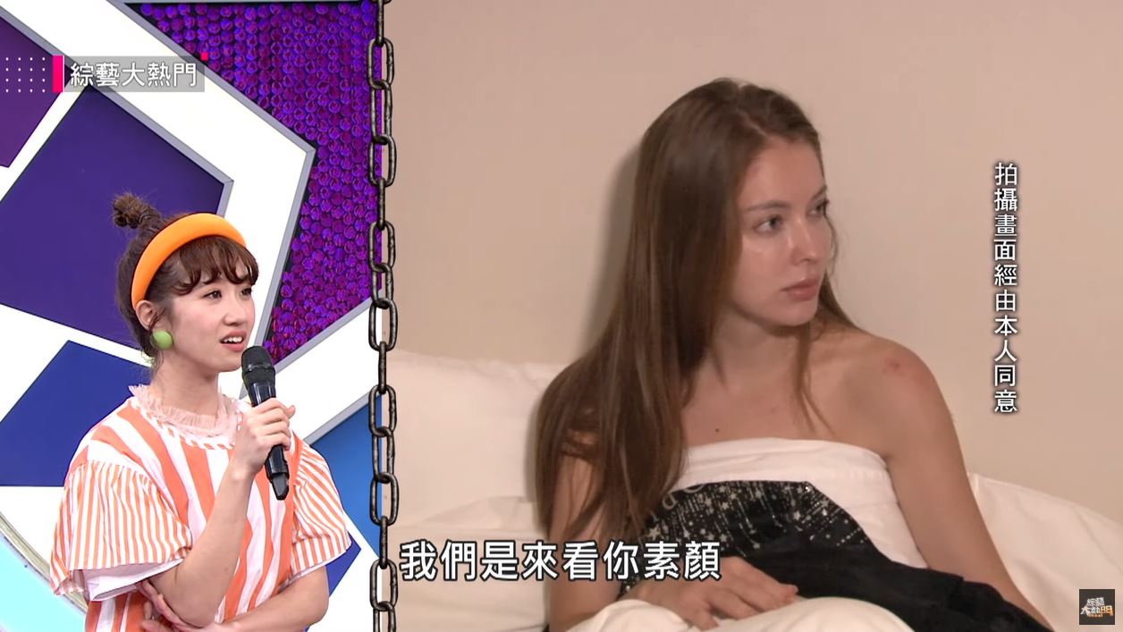 來自俄羅斯的安妮有著性感火辣的好身材,先前推出全裸寫真書《透明的妮》也受到大批粉絲搶購。日前《綜藝大熱門》派出大根突襲安妮睡相,沒想到安妮只穿了一件小可愛,讓觀眾們大飽眼福,不過大根的突襲讓安妮驚魂未定,氣得直說:「你怎麼可以這樣子!」