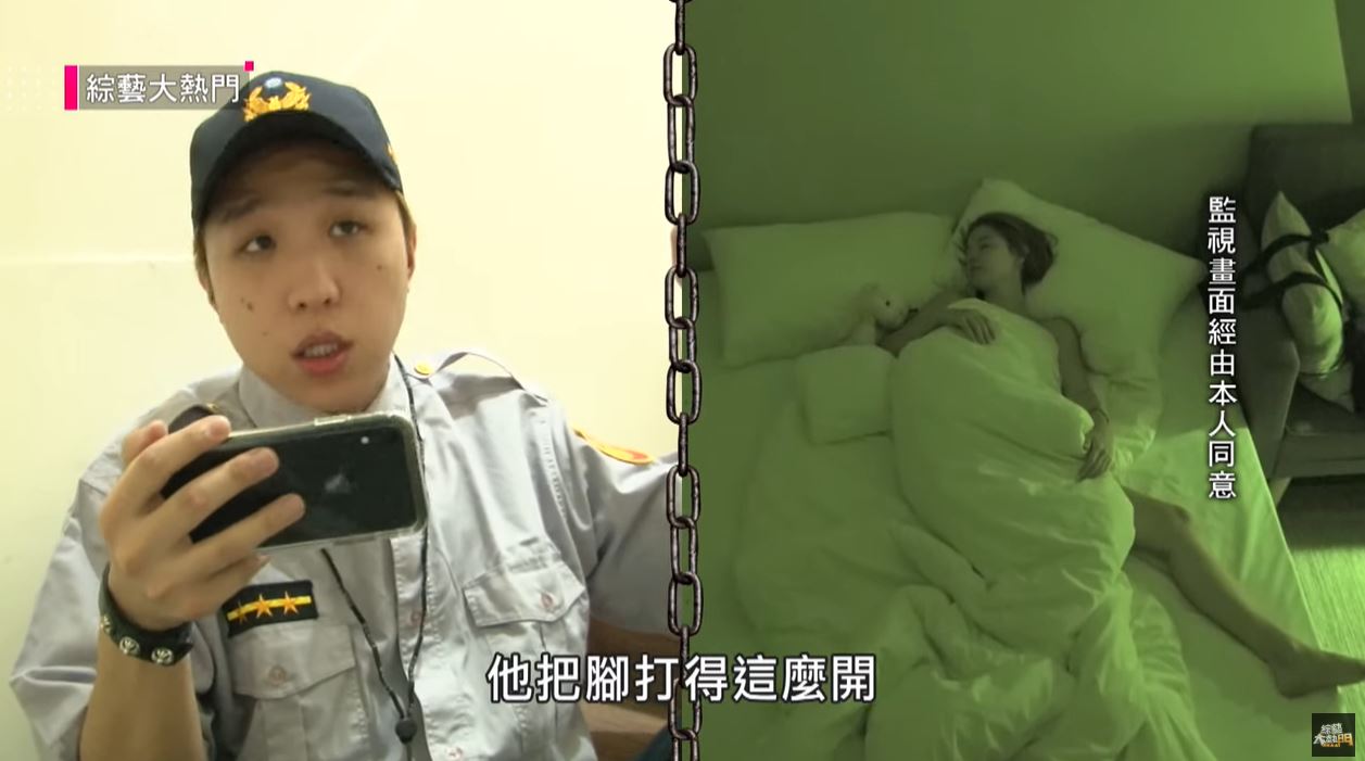 只見安妮逐漸熟睡,睡到一半雙腿大開,還豪邁地把一隻腳掛在床外,纖細嫩白的美腿被看光光,連安妮自己看了VCR都忍不住捏一把冷汗,害羞直說:「Oh my god!」接著大根透過經紀人取得鑰匙,偷偷打開安妮的房門,在安尼耳邊用力地吹了一聲哨子,嚇得她立刻跳起來還差點走光,大根趕緊拿衣服幫安妮蓋上。