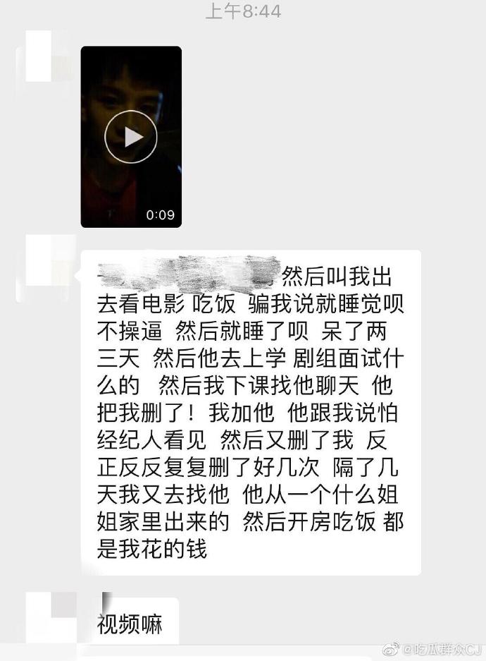 爆料者表示,一開始漆培鑫剛出道時身無分文,吃飯開房間的錢都是自己先支付,但結果卻被漆培鑫反反覆覆的刪好友,讓她氣得爆出漆培鑫的多張照片,照片中漆培鑫清晰地被拍到正面照,身上一絲不掛,除此之外,漆培鑫一部抽菸的影片也被流出,他在影片中熟練的用兩手夾著菸,並對著錄影片的女子騷話隨口即來,先問:「妳有多辣?」,接著疑似襲上女子胸部讓嬌喘一聲之後表示:「妳又沒穿胸罩」,而女子隨即反駁:「我穿了」,對話尺度非常大。