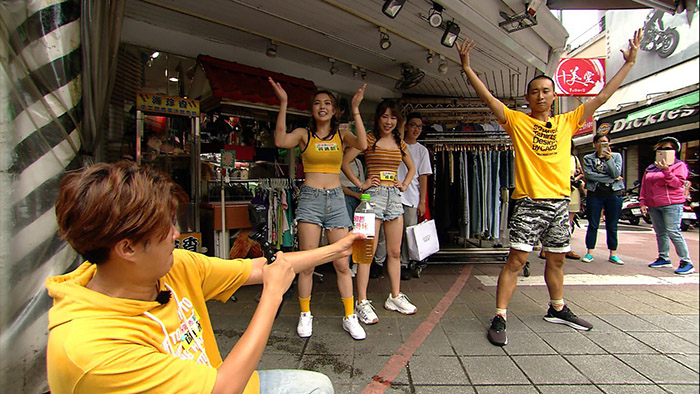 《綜藝新時代》本週帶大家來到嘉義美食聖地「噴水圓環」,首先第一關「轉吧七彩扭蛋機」找路人幫忙轉扭蛋,看扭蛋裡的內容是美食還是懲罰。而小嫻隊扭到的懲罰是最近網路爆紅的「踢瓶蓋挑戰」,由阿龐拿著水瓶讓高山峰來踢,只見高山峰有模有樣的預備動作,自信滿滿的踢出,卻踢到瓶子裡的飲料噴的阿龐滿臉都是,讓眼睛進水的阿龐當下直呼「I can`t see!(我看不見了!)」。
