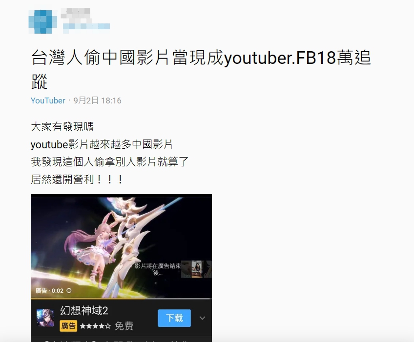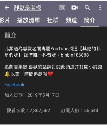 近日有網友在「Dcard」爆料,有超過5萬粉絲的YouTube頻道「靜默是老板」,其實並非本人經營,他先表示最近YouTube的中國影片越來越多,接著進一步表示自己求證之後,發現「靜默是老板」是直接搬運中國抖音短視頻的影片,不僅如此,帳號還號稱自己是「本人經營」,其他的帳號都是假的,讓不少粉絲被欺騙,而其FB也累積了18萬人按讚,更扯的是,該頻道甚至「開設營利」,不僅盜取原創者的辛苦結晶,還藉機靠著搬運影片大賺一筆。