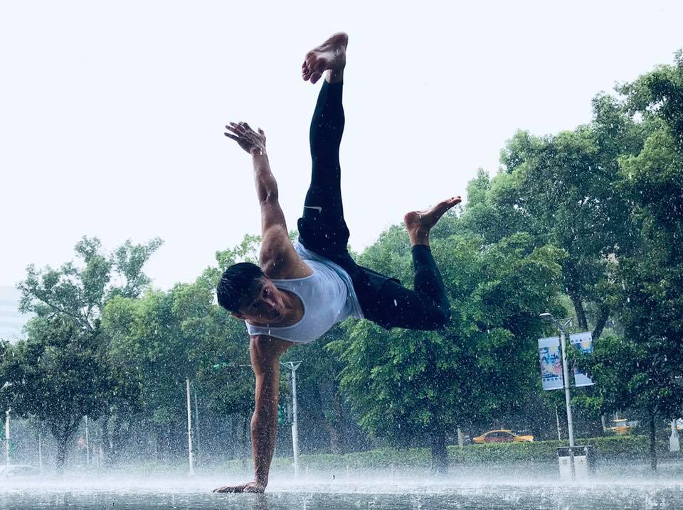 「5566」小刀雨中「單手倒立定竿」!手臂「超man線條」炸出 粉絲看傻:好強!!