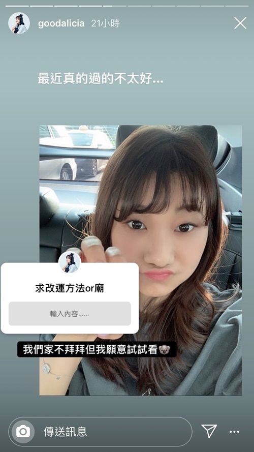 由於最近實在太多不順利的事,愛莉莎莎也尋求廣大網友們的幫忙,想詢問有沒有改運的方法或廟,坦言雖然家中不拜拜,但她願意去嘗試!