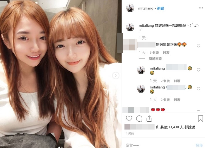 Mita姊妹倆合照一出,立刻有不少網友紛紛留言,「姊妹都是正妹!」、「好強的基因」、「有點雙胞胎的感覺」、「甜美破表!」、「優良基因啊~」。