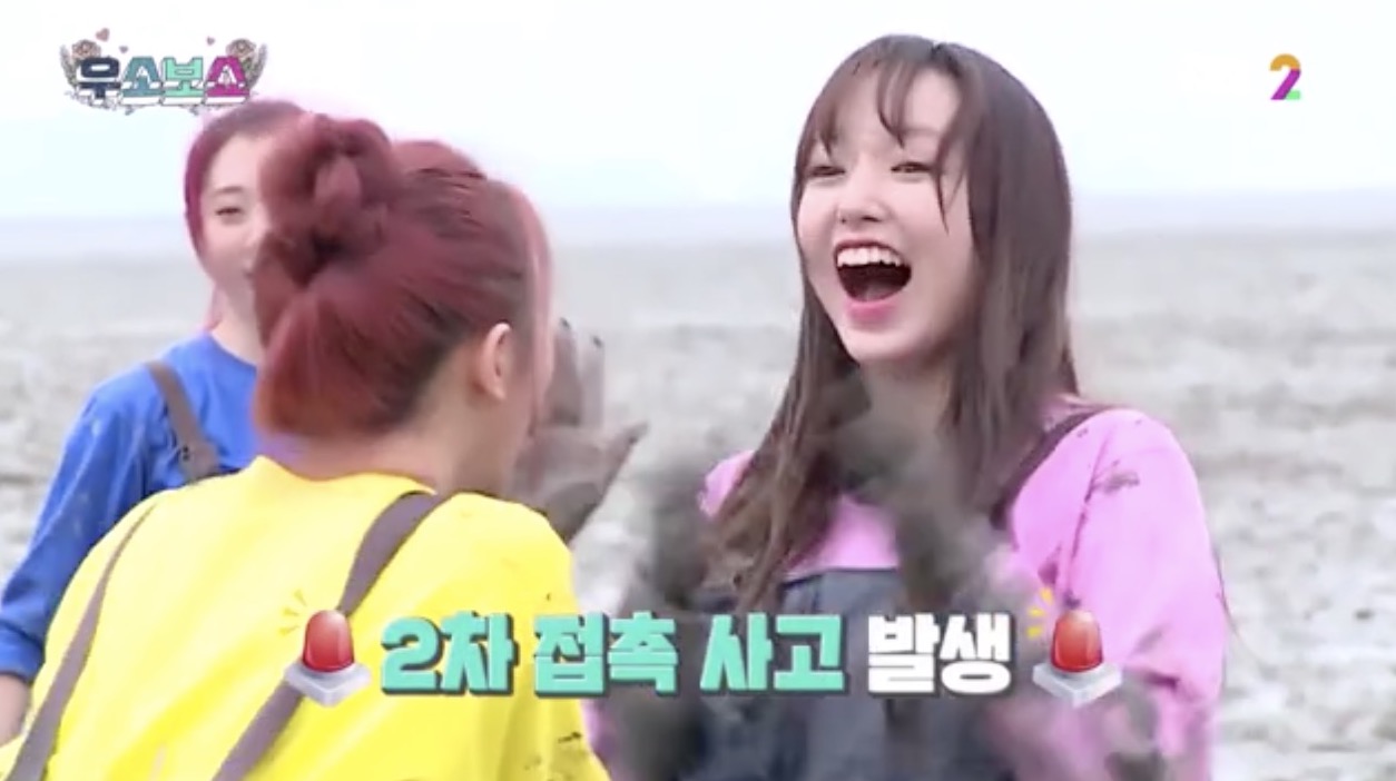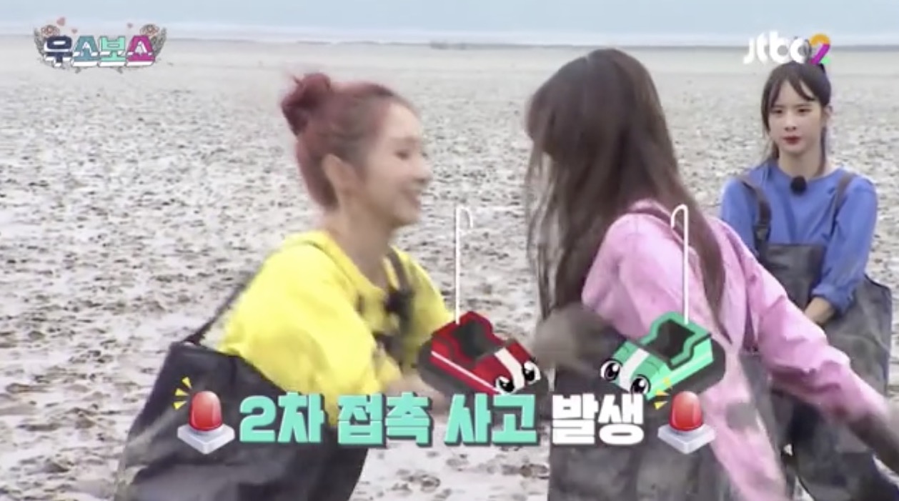 然而過去孟美岐在節目中也曾不小心襲擊了程瀟的胸部,當時她和程瀟以及吳宣儀以宇宙少女的身份登上韓國綜藝節目《宇少看秀》,而在其中一個遊戲環節是雙方需要互推對方,只要有一方的腳先移動了就算失敗,而當程瀟與孟美岐開始遊戲後,孟美岐出手推她時不小心推到了胸部,程瀟也瞬間露出害羞的笑容,但孟美岐接著卻繼續碰程瀟的胸部,在當時引起一陣爭議,許多粉絲們也跳出來替孟美岐解釋只是不小心碰到。反觀Sunnee2018年時在路上和孟美岐打鬧,甚至強行摟抱與親吻就被許多網友砲轟是「性騷擾」。