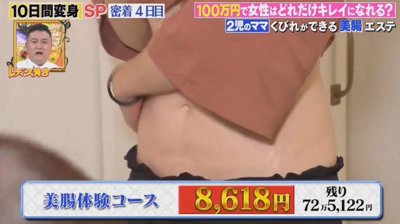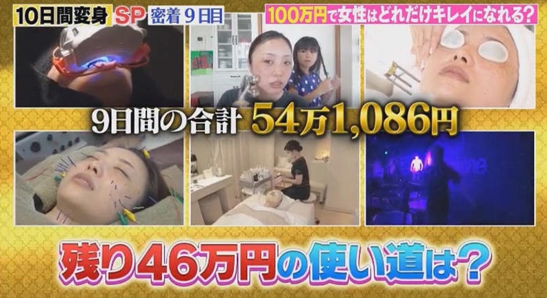 畫面轉換到,32歲的家庭主婦,要照顧家庭的她不可能拋家棄子飛去外國做療程,但她所選擇的變美方法,跟邋遢導播完全不一樣,她在日本接受簡單的美容療程,並且將錢花在購買保養品之上,還在閒暇之餘進行不用花錢的運動。首先,她就買了許多的保養品,接受療程較為簡單的美容護膚、臉部針灸、雷射以及美腸治療,雖然美腸治療的效果會因人而異,不過主婦可是從79.5公分的腰變成76公分,腰整整瘦了一圈,她還做了美白牙齒的療程!家庭主婦並不像邋遢導播一樣一下子噴掉好幾十萬的錢,是不斷累積幾千幾千的小型美容,甚至有時因為在家帶小孩所以根本花不到什麼錢,在家運動也是美容的方法之一還完全免費~直到第九天居然還有46萬沒花掉,到最後她把錢都拿去買衣服還有拍了風格十分有時尚感的沙龍照當作紀念,照片裡的她非常有明星架式!