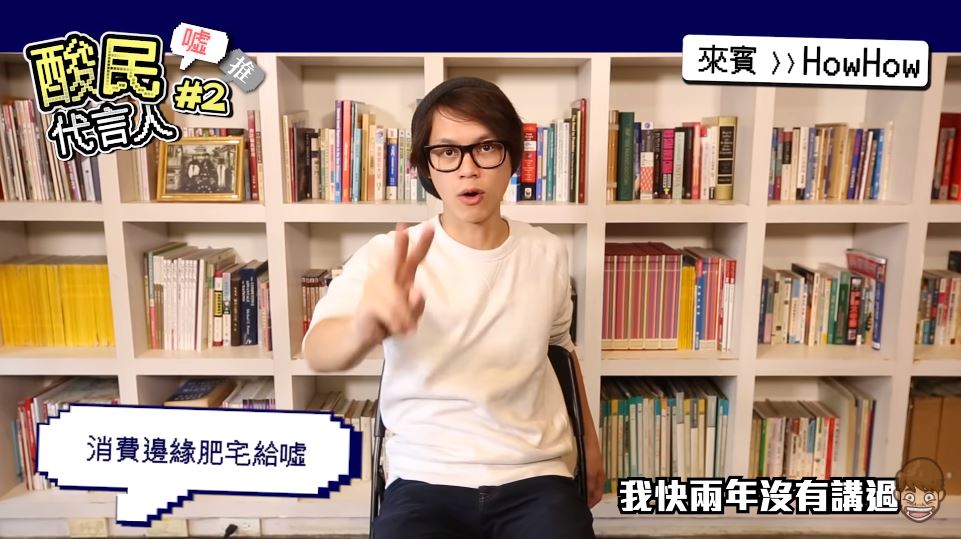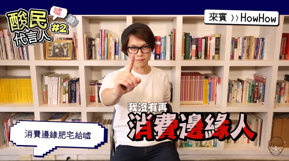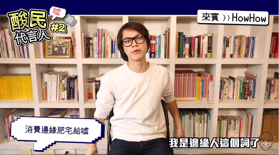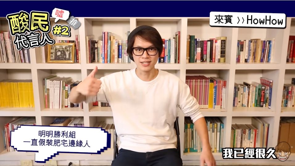HowHow早期常自稱自己是「邊緣人」、「肥宅」,但是被起底其實和不少大牌明星合作,除此之外,HowHow更在去年底時,和粉絲分享自己向歌手「鄧福如」求婚成功的喜悅,被網友戲稱為「工具人聯盟的叛徒」!近期他和百萬Youtuber「蔡阿嘎」合拍影片時,在影片中脫口而出「很久沒有假裝肥宅邊緣人」。