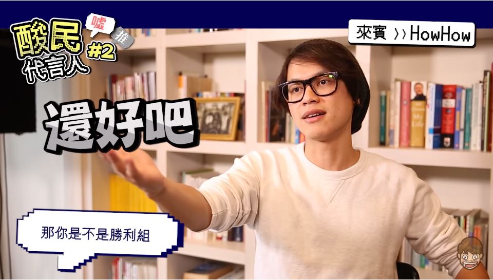 蔡阿嘎在11日時,上傳一部影片「蔡阿嘎X HowHow:只會業配的難笑假邊緣人!垃圾How欠噓!」,邀請HowHow來頻道中一起開箱酸民的留言。結果HowHow被網友酸「消費邊緣肥宅給噓」,讓他澄清「我已經快兩年沒有講過,我是邊緣人這個詞了,我沒有消費邊緣人」,透露自己洗不掉身上的標籤。隨後網友又犀利點評「明明勝利組,一直假裝肥宅邊緣人」,讓他只好再次笑回「我已經很久沒有假裝肥宅邊緣人了」!不過他仍不好意思自稱「人生勝利組」,因此他也說「還好吧,便當也是魯肉飯+滷蛋,有時候滷蛋還不想加」,讓網友笑稱「明明就是How幸fu的人生勝利組!」。