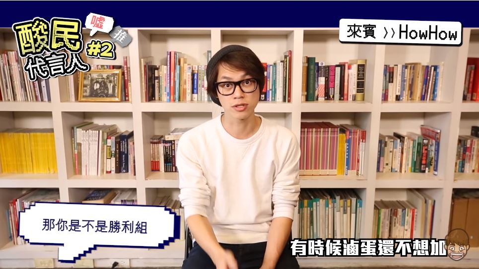 Youtuber「HowHow」本名陳孜昊,自稱是「台灣金城武」。影片中雖然有大量的葉配,但因為總是用有趣、新奇的方式包裝,反而靠葉配吸引一票死忠的粉絲,頻道目前已經突破百萬訂閱。因為他的影片多是自己一人現身,所以常常自嘲是「邊緣人」,但近期他和Youtuber「蔡阿嘎」合拍影片時,終於承認自己「不是邊緣人」!