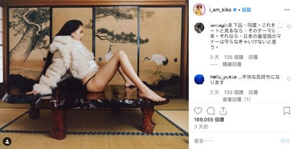 日本混血模特「水原希子」向來相當熱愛嘗試多元的風格,行事風格大膽的她也時常在鏡頭前展現大尺度的一面,而水原希子身為日本名模也常常以各式各樣的造型示人,不論是甜美、個性、前衛、辣妹風以及中國風等都難不倒她。近日,水原希子在IG上發出一組性感照,在日本傳統和室中水原希子的穿著非常清涼,大方展現出姣好的身材,但卻引起部分日本網友不滿,認為她不尊敬日本文化,留言區中湧入許多負評。