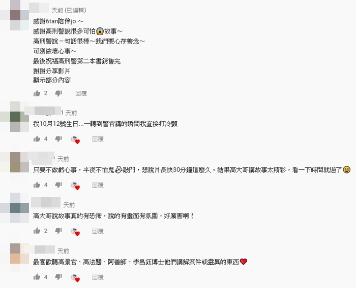 種種離奇案件,不只現場的解婕翎、6 tan心底發毛,網友看完也覺得十分可怕,紛紛留言,「越聽越毛,可是又很想繼續聽...人真的不能做壞事」、「寧可信其有,不可信其無」、「高大哥說的那些故事真的是有點恐怖」。