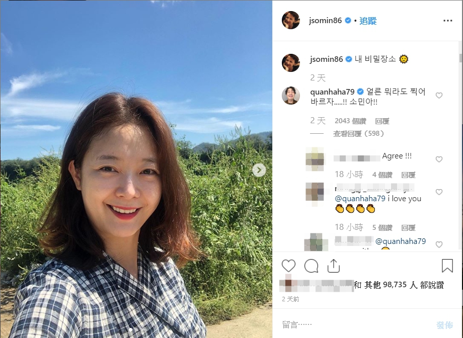 韓國綜藝節目《Running Man》開播至今已經9年,深受大批海內外粉絲喜愛,經歷過成員陸續變動之後,除了固定班底劉在錫、池錫辰、金鍾國、哈哈、宋智孝、李光洙之外,目前還加入了新成員全昭旻、梁世燦,以「6+2」的形式出現在螢光幕,成員們也因為《Running Man》累積了深厚的情感,近日哈哈在全昭旻分享的一則貼文中回覆留言,但疑似因為玩笑太過火而惹議。