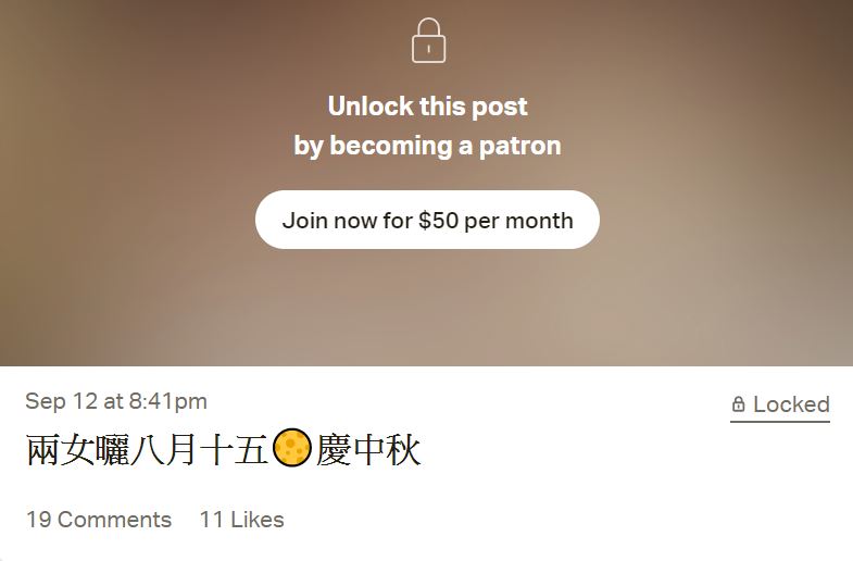 事實上,近日搣時潘更架設了一個「18禁」的付費網站,內容相當引人遐想,她表示「想說而不可說的話,想穿而不可穿的衣服,就在這裡解鎖吧」,網站中有相當多大尺度的照片,也有不少在IG上「解鎖的照片」,包括「兩女曬八月十五,慶中秋」、「胸比月餅大」等等,但都需要花錢「訂閱」。而搣時潘也解釋,自己相當喜愛動物,在平台賺取的部分收益用以救助流浪動物。